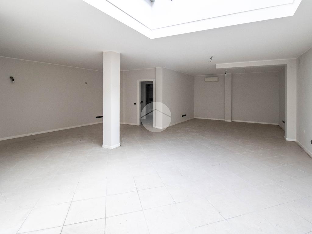 L'immobile in vendita, avente superficie interna di circa 100 metri quadrati, estende la propria metratura interamente al piano terra in un unico locale open space arricchito da due comodi servizi igienici privati, di cui uno a norma disabili. Internamente la struttura raggiunge un’altezza di circa 2,7 metri e presenta un lucernaio sul soffitto, il quale dona maggiore luminosità all'ambiente interno. Lo spazio direzionale, a norma per l’accesso disabili, è dotato di riscaldamento e condizionamento (ambedue autonomi), nonchè d’impiantistica elettrica e d'illuminazione. La proprietà risulta essere in buono stato d'uso data la ristrutturazione avvenuta nell'anno 2000.