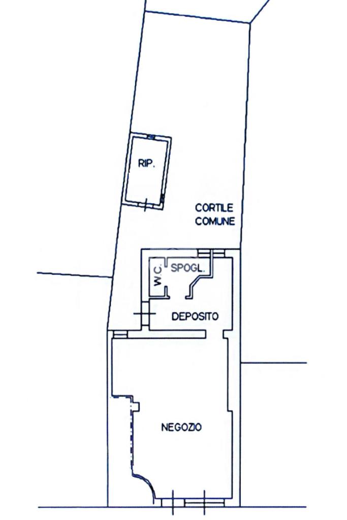 Il negozio proposto in locazione misura complessivamente 40 metri quadrati circa, di cui 5 metri quadrati adibiti a magazzino, ed è collocato al piano terra di un edificio di due piani.
