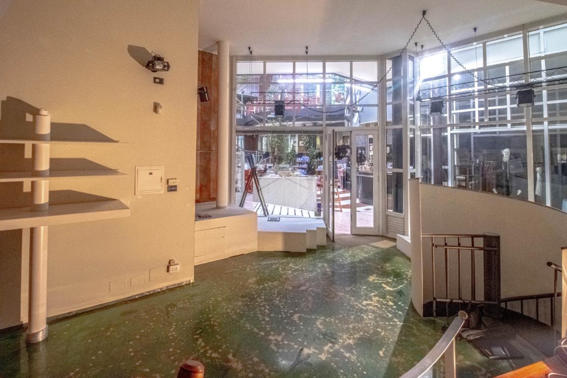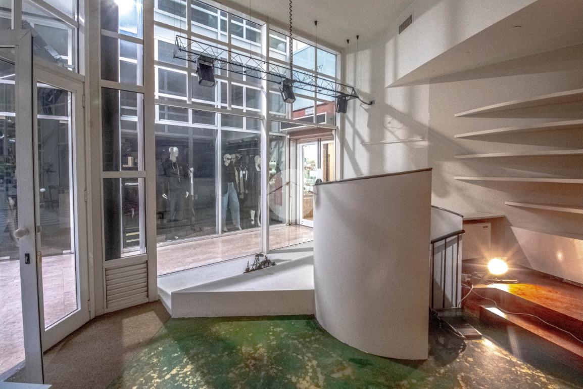 - Al piano terra troviamo circa 60 metri quadrati di locale commerciale open space visibile esternamente grazie all’ottimale posizione ad angolo e alle due grandi vetrate espositive di cui gode, le quali donano non solo maggiore visibilità ma ulteriore luce all’ambiente interno;