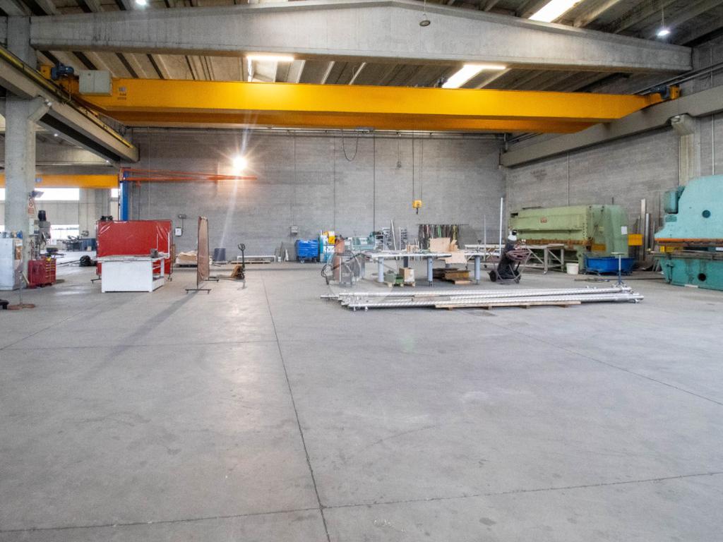 - il capannone, avente pilastri, è di circa 1.770 metri quadrati, disposti interamente al piano terra lungo due campate. L’ingresso, provvisto di portineria, può avvenire mediante cinque portoni d’accesso di altezza 5,01 metri mentre internamente la struttura raggiunge un’altezza di 9,1 metri con un’altezza sotto trave di 6,86 metri circa;