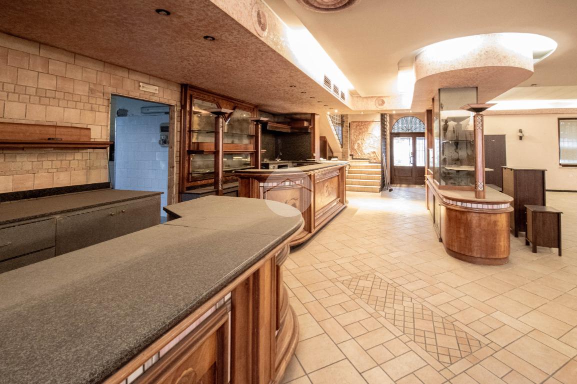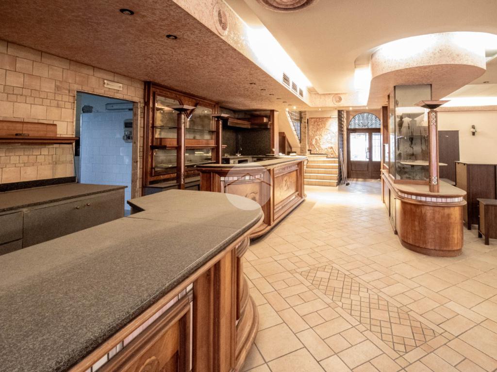 Il negozio in vendita dispone di una metratura complessiva di circa 595 metri quadrati, di cui 77 metri quadrati circa adibiti a magazzino al piano terra, il tutto disposto su tre piani. Internamente l'immobile raggiunge un’altezza minima di 2,75 metri e una massima di 3,20 metri, è suddiviso in circa dodici locali con annessi ben sette servizi igienici privati suddivisi sui tre livelli. La struttura è dotata di tutti gli impianti necessari quali riscaldamento e condizionamento, ambedue centralizzati, elettrico, d’illuminazione e d’allarme; il tutto completato da un sistema antincendio composto da antincendio a idranti, luci e uscita d’emergenza. Il locale commerciale presenta inoltre due canne fumarie con relativa aspirazione fumi. La proprietà risulta essere in una posizione ad angolo e godere di comodo doppio ingresso.