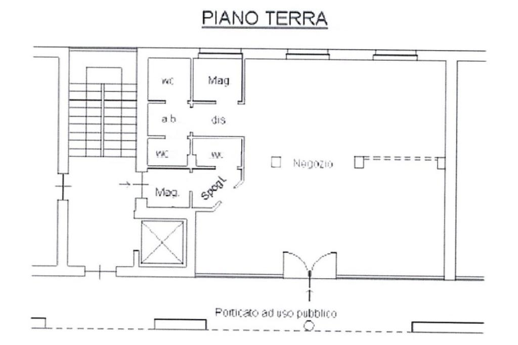 Proponiamo in locazione un negozio di circa 90 metri quadrati, metratura distribuita al pian terreno di un edificio di due piani con ascensore.