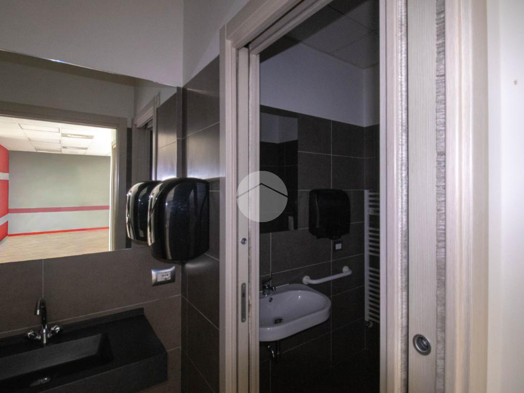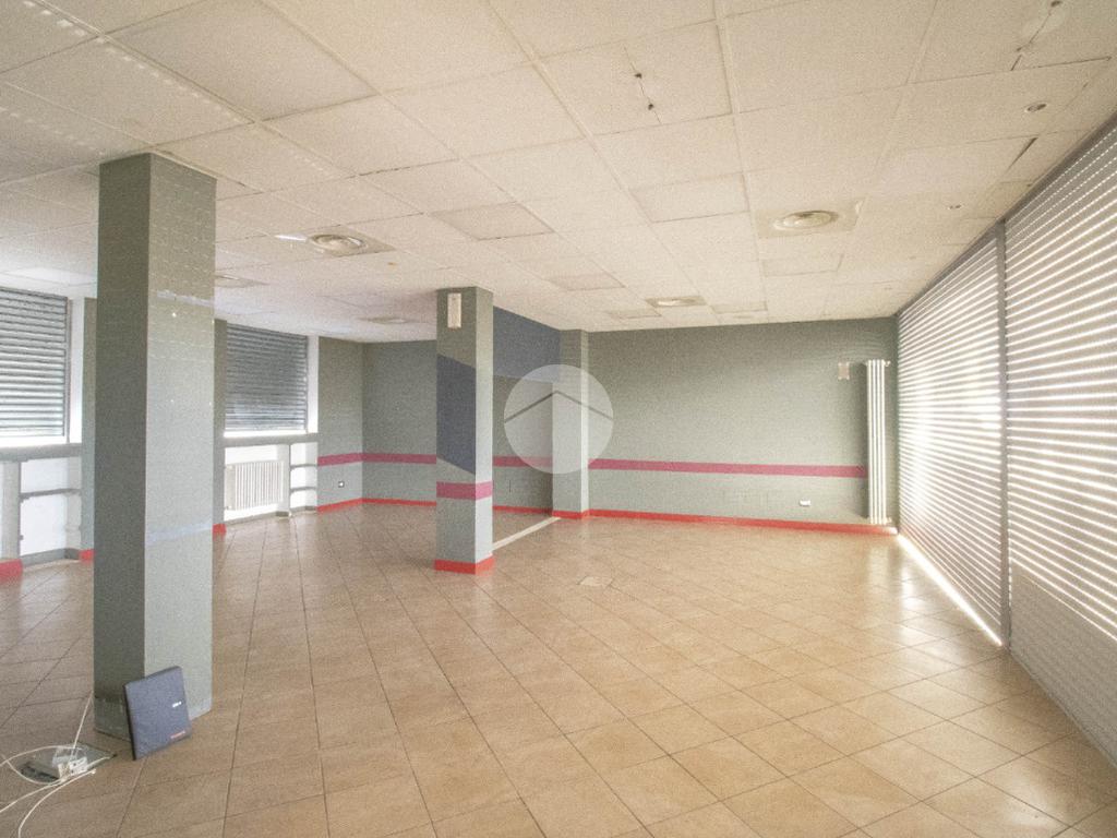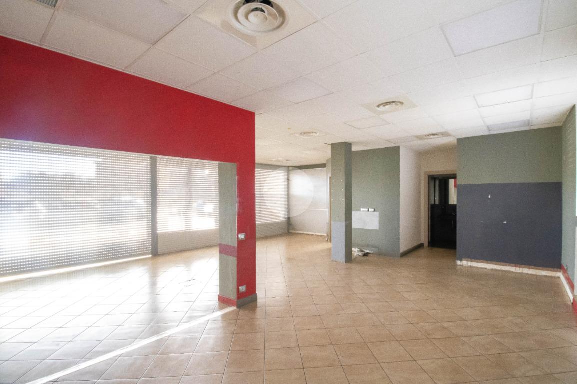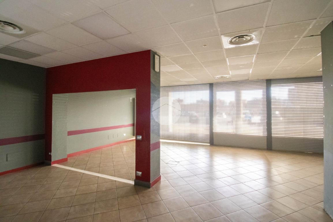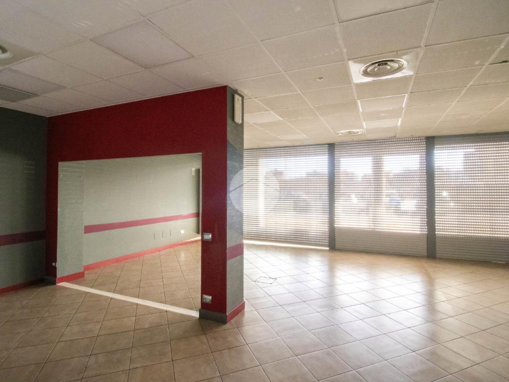 La soluzione proposta in affitto possiede una superficie totale di 90 metri quadrati circa, di cui 5 metri quadrati adibiti a magazzino, disposti interamente al piano terra lungo un unico locale open space completo di tre servizi igienici privati, a norma disabili e con ventilazione meccanica. Internamente la struttura raggiunge un'altezza di circa 2,70 metri, data la presenza di controsoffitto, e presenta tre ampie vetrine fronte strada, complete di saracinesca motorizzata, le quali rendono l'ambiente luminoso e donano maggiore visibilità all'attività proposta. Il locale commerciale, a norma per l’accesso disabili, dispone di riscaldamento e condizionamento ambedue autonomi, nonché d’impiantistica elettrica e d’illuminazione; completano la soluzione le luci d’emergenza e l'aspirazione fumi di cui gode l'immobile. La proprietà risulta essere cablata e possedere comodo doppio ingresso.
