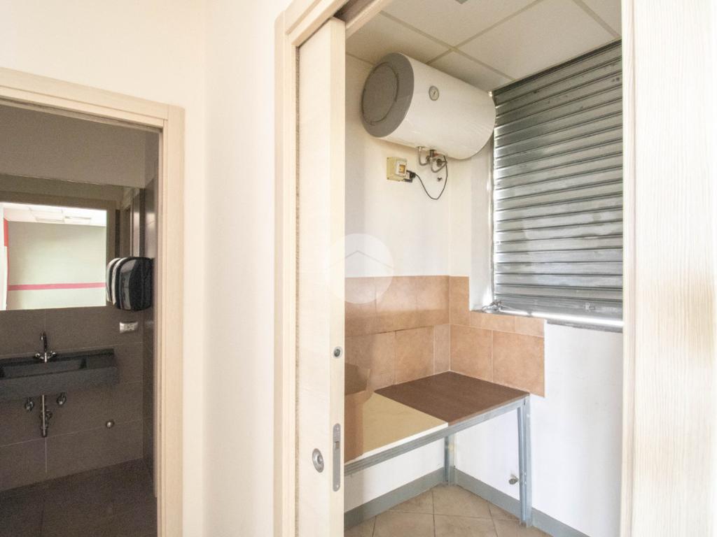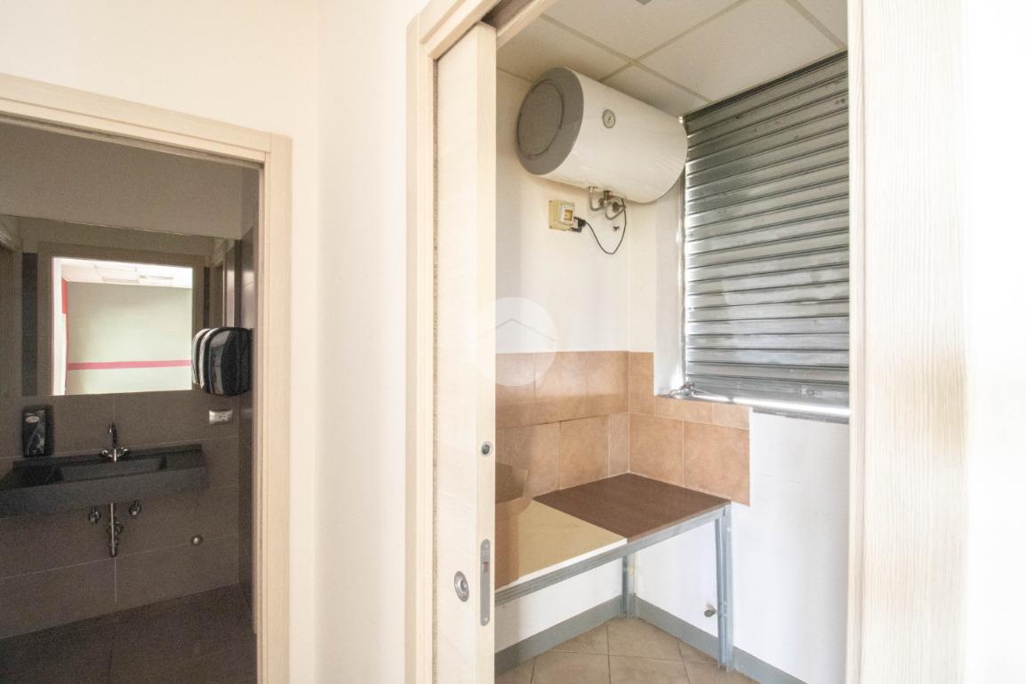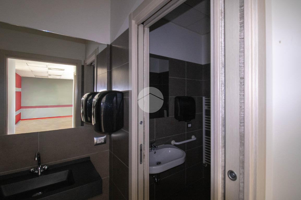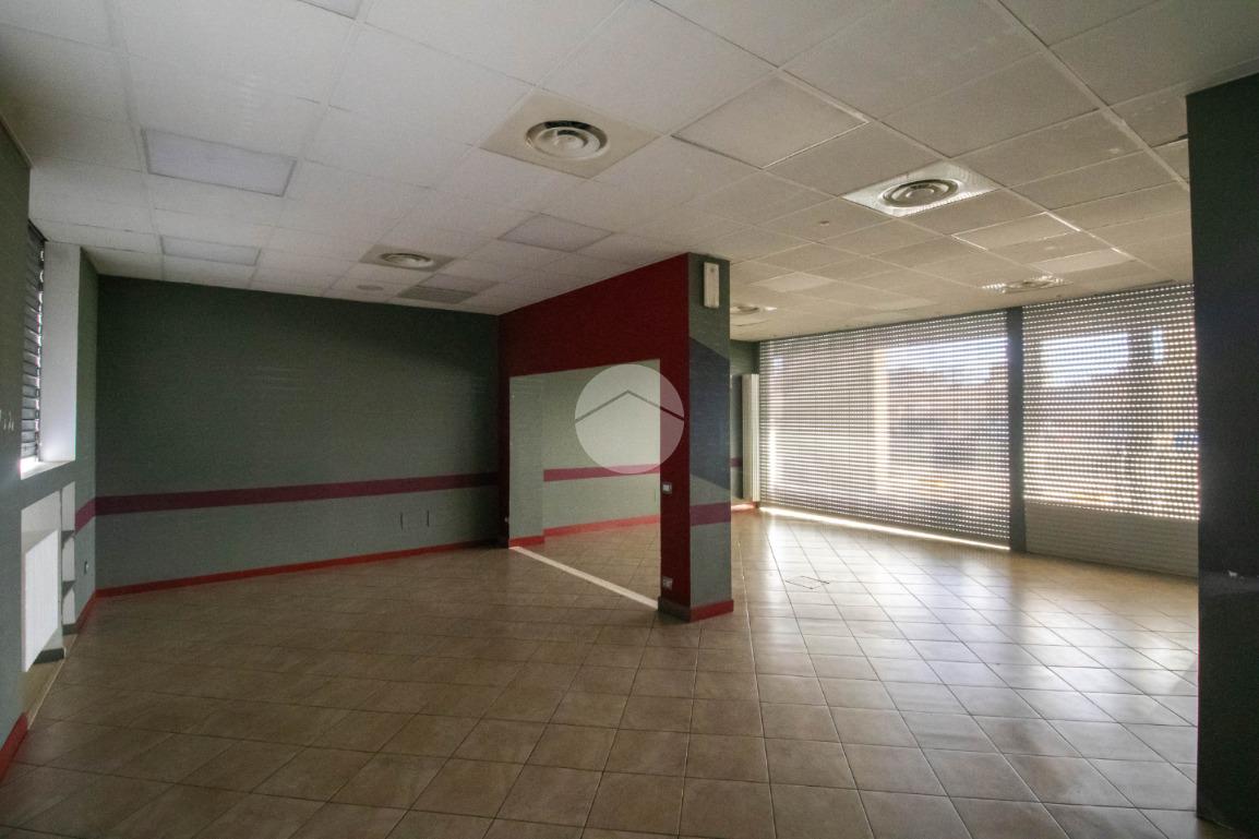 La soluzione proposta in affitto possiede una superficie totale di 90 metri quadrati circa, di cui 5 metri quadrati adibiti a magazzino, disposti interamente al piano terra lungo un unico locale open space completo di tre servizi igienici privati, a norma disabili e con ventilazione meccanica. Internamente la struttura raggiunge un'altezza di circa 2,70 metri, data la presenza di controsoffitto, e presenta tre ampie vetrine fronte strada, complete di saracinesca motorizzata, le quali rendono l'ambiente luminoso e donano maggiore visibilità all'attività proposta. Il locale commerciale, a norma per l’accesso disabili, dispone di riscaldamento e condizionamento ambedue autonomi, nonché d’impiantistica elettrica e d’illuminazione; completano la soluzione le luci d’emergenza e l'aspirazione fumi di cui gode l'immobile. La proprietà risulta essere cablata e possedere comodo doppio ingresso.