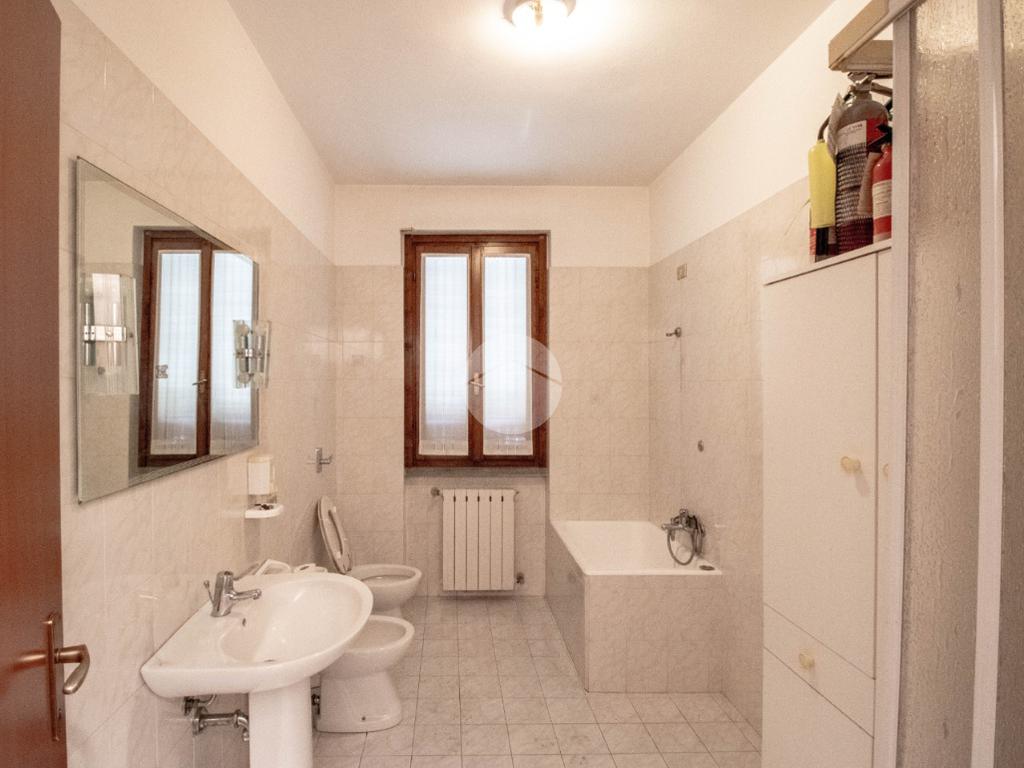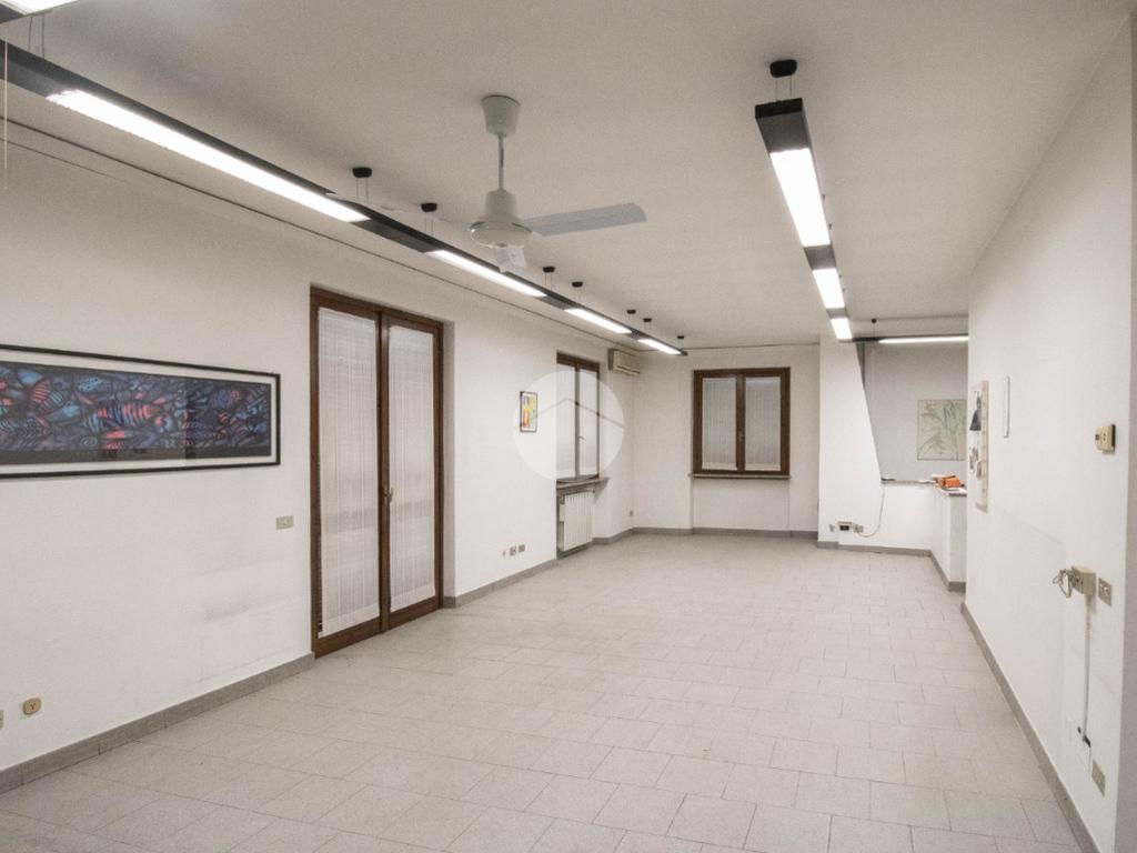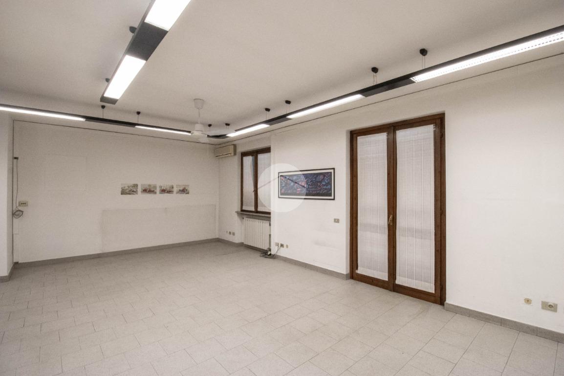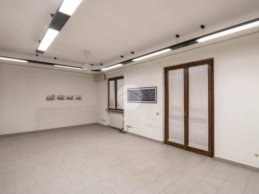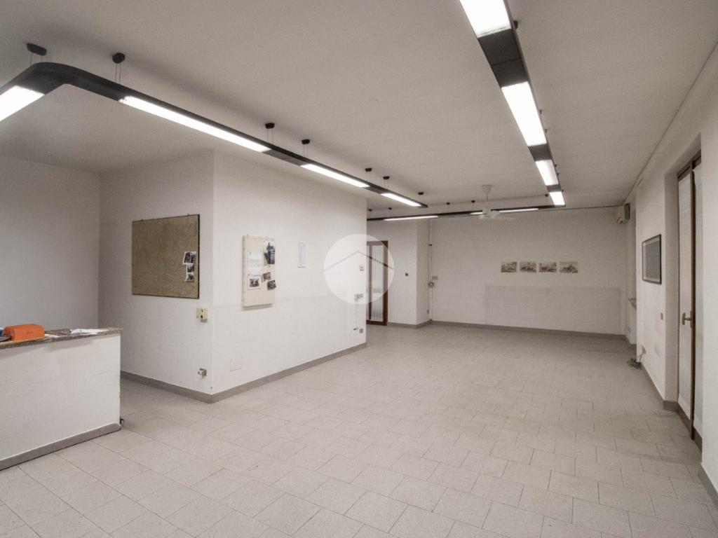 - Al piano terra troviamo circa 55 metri quadrati di negozio open space, avente altezza 3,3 metri, molto luminoso grazie a tre ampie vetrine fronte strada, dotate di saracinesca scorrevole motorizzata, e particolarmente visibile data la presenza di uno spazioso portico di 20 metri quadrati, ad uso esclusivo; sullo stesso livello è inoltre presente un funzionale bilocale di 65 metri quadrati circa, composto da soggiorno open space con cucina abitabile, una camera da letto e un comodo servizio igienico privato;