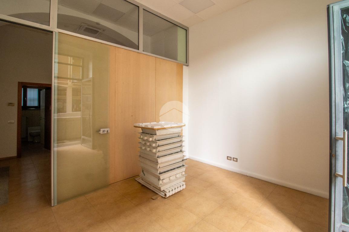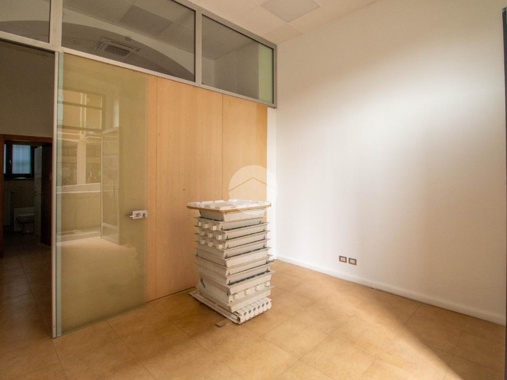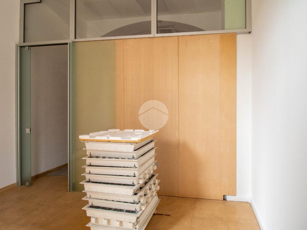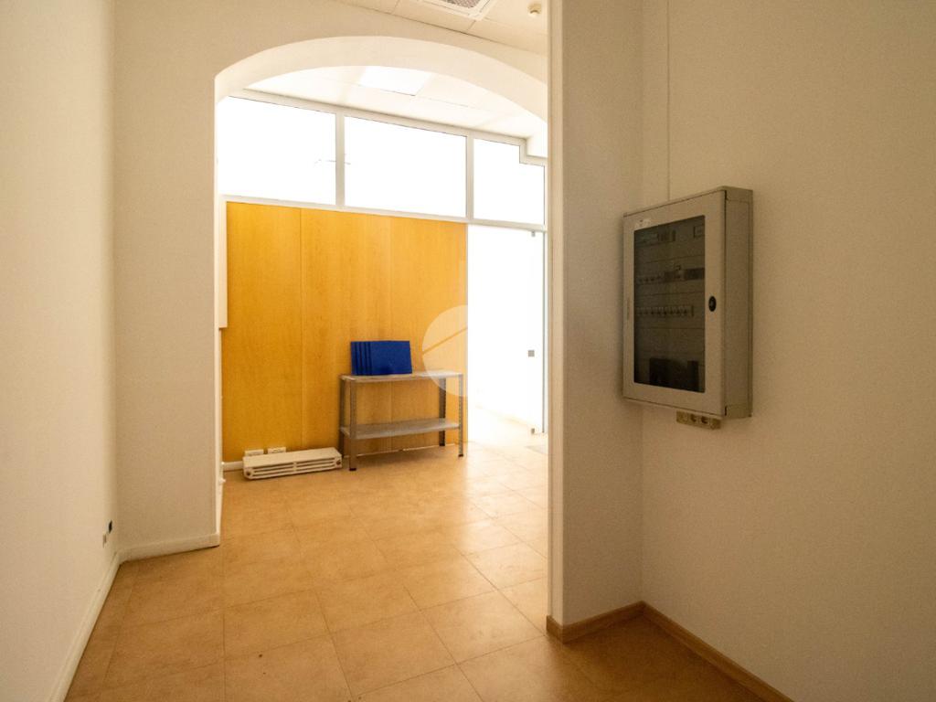L'immobile, a norma per l'accesso disabili, sviluppa la sua superficie interna di circa 60 metri quadrati al piano terra, suddivisa in due locali con annesso un comodo servizio igienico privato. L’ufficio è dotato di comodo doppio ingresso: uno principale fronte strada con vetrina, la quale garantisce visibilità e luminosità agli ambienti interni, e un secondo accesso sul retro tramite porta blindata. Internamente la struttura raggiunge un'altezza di circa 3,5 metri, data la presenza di controsoffitto, e presenta una pavimentazione con rifiniture in piastrelle. L'immobile dispone di riscaldamento e climatizzazione, ambedue autonomi, di elettricità, d’illuminazione e di una predisposizione per l’impianto d’allarme. Completa la soluzione un sistema antincendio composto da rilevatori di fumo, antincendio a idranti, illuminazione d’emergenza e uscita di sicurezza. La proprietà risulta inoltre essere cablata e disporre di internet a banda larga.
