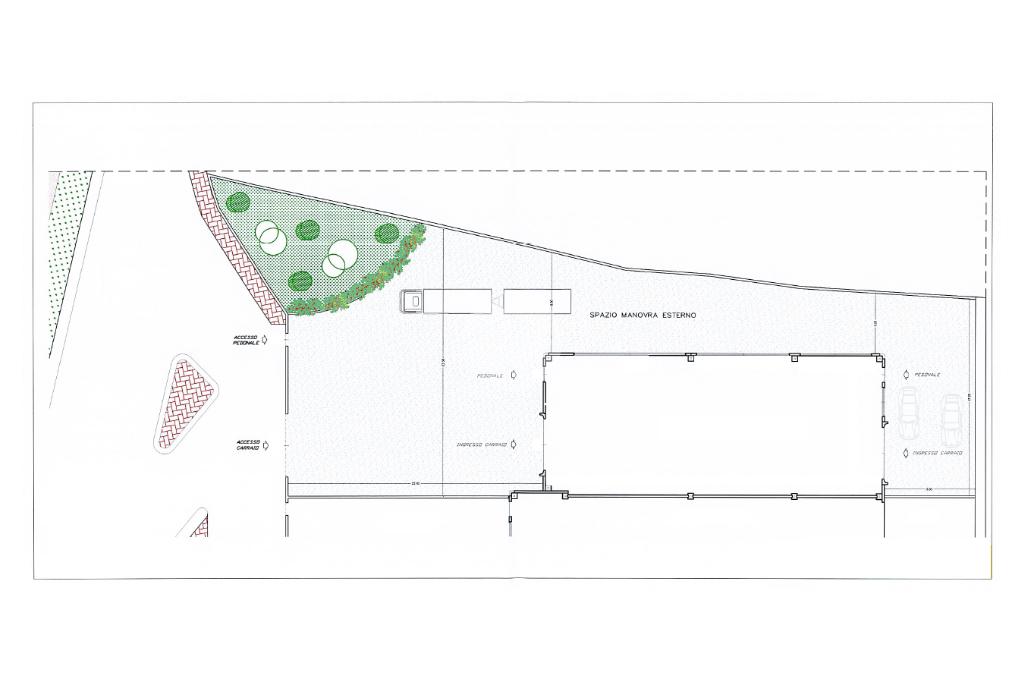 Il capannone proposto in vendita dispone di una superficie interna di circa 375 metri quadrati con annessa un'area esterna privata di circa 900 metri quadrati.
