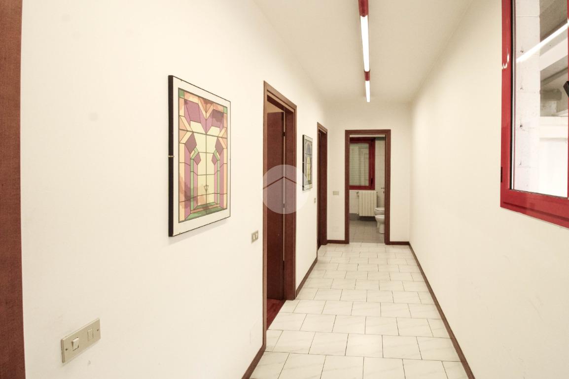 L’immobile proposto in locazione possiede una superficie di circa 560 metri quadrati, distribuiti tra il piano terra e il piano primo di un edificio di due livelli.