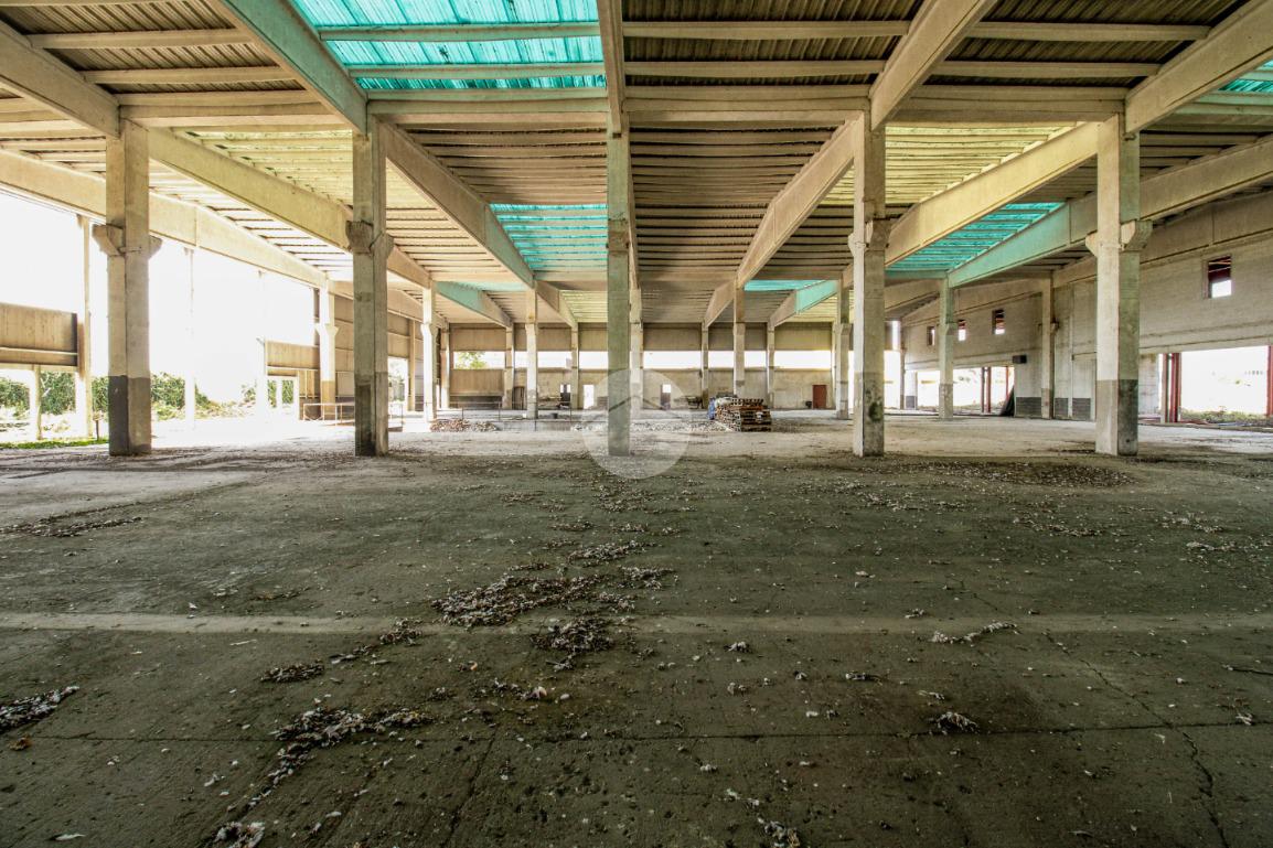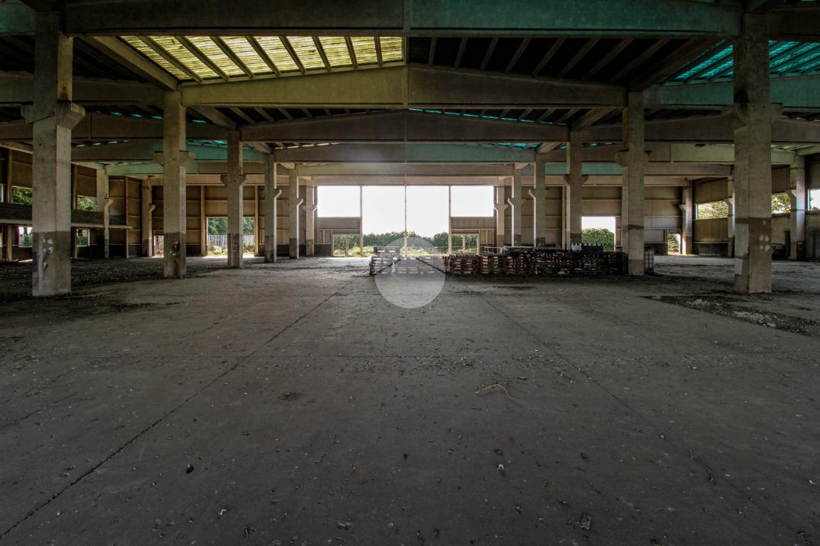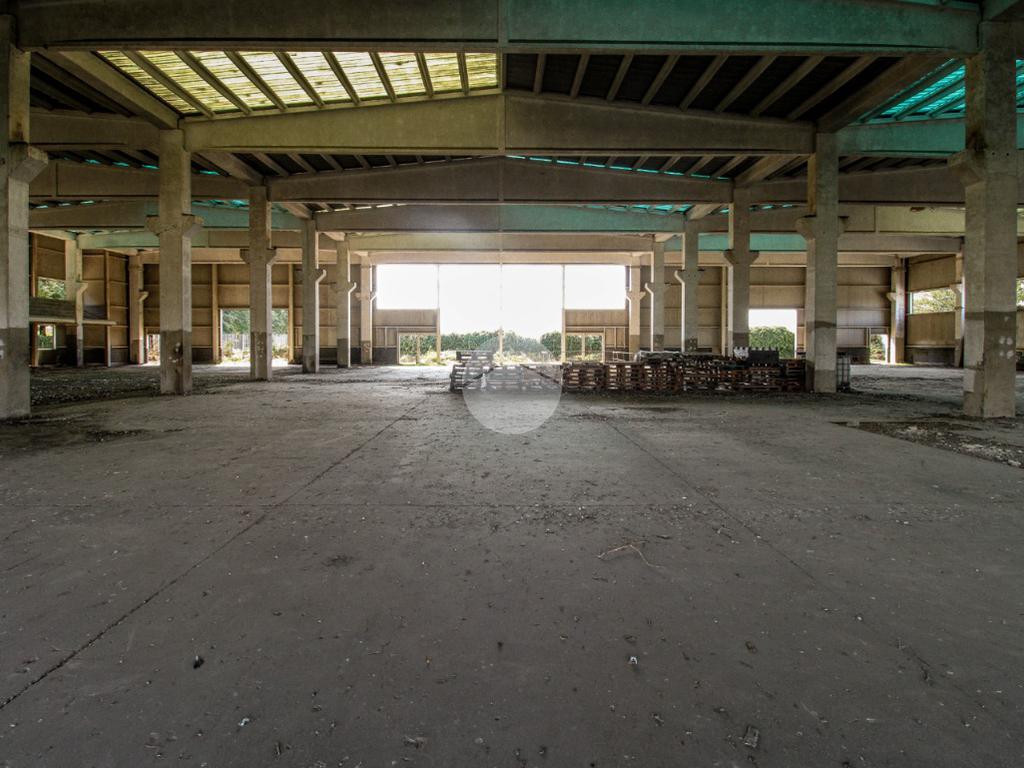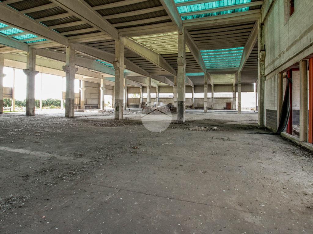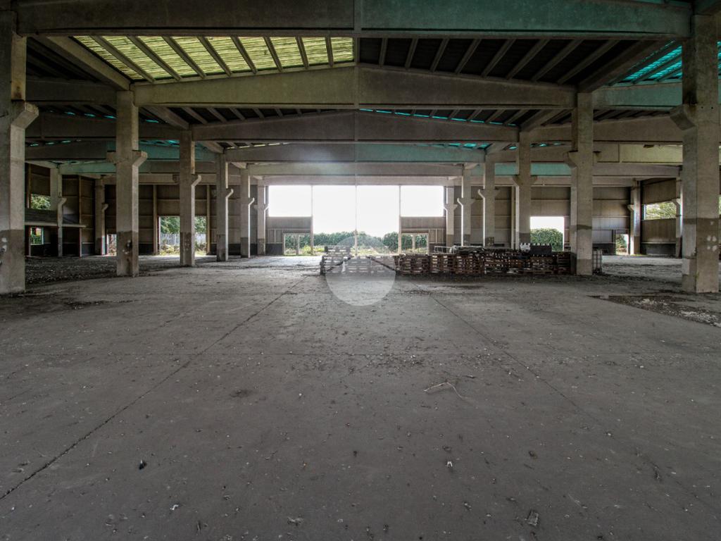 - Il capannone, avente pilastri, presenta una superficie di 1.350 metri quadrati circa, distribuiti interamente al piano terra ripartito su oltre cinque locali lungo tre campate. L’ingresso può avvenire mediante quattro portoni d’accesso di altezza circa 4,5 metri mentre internamente la struttura raggiunge un’altezza di 8,5 metri con un’altezza sotto trave di 7,5 metri circa;