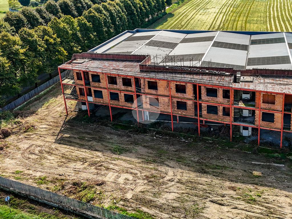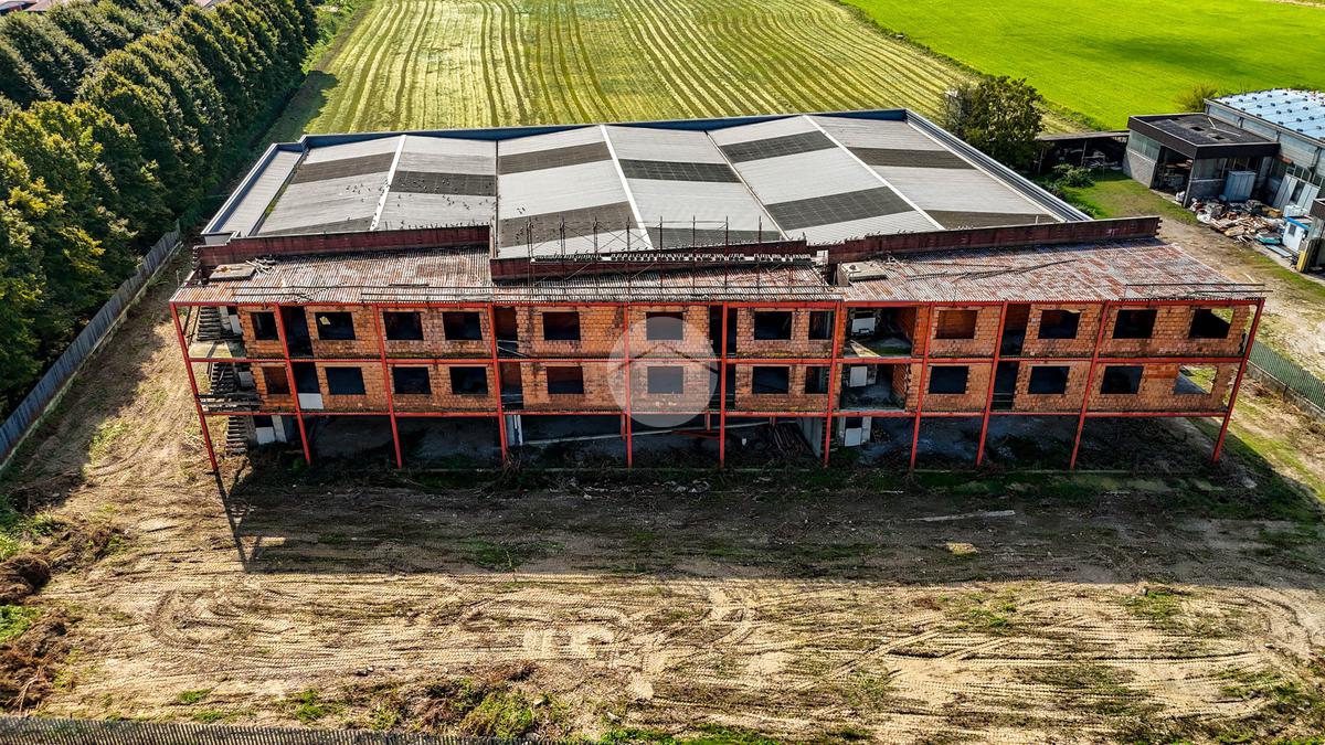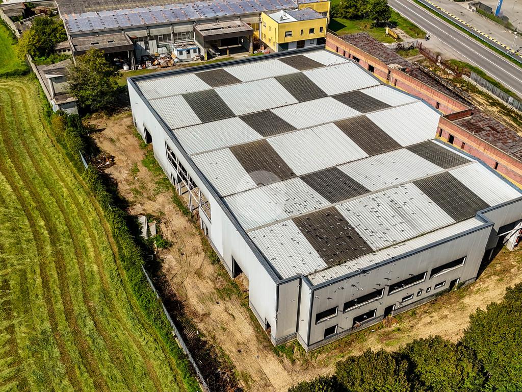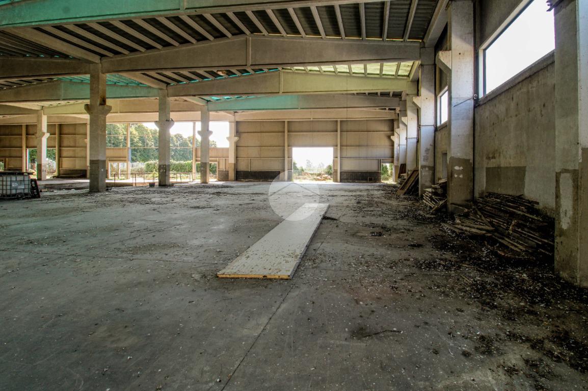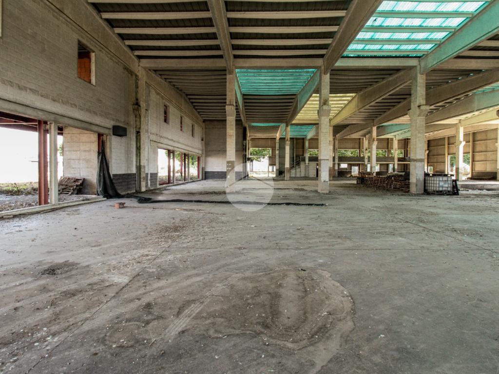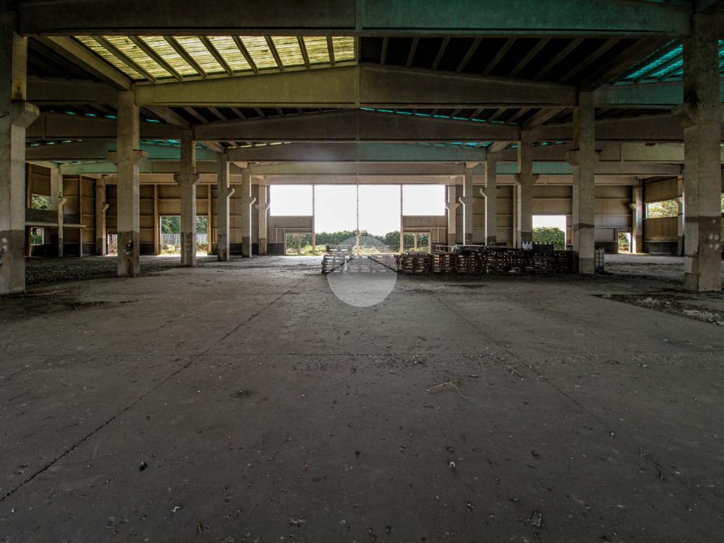 - Il capannone, avente pilastri, presenta una superficie di 1.350 metri quadrati circa, distribuiti interamente al piano terra ripartito su oltre cinque locali lungo tre campate. L’ingresso può avvenire mediante quattro portoni d’accesso di altezza circa 4,5 metri mentre internamente la struttura raggiunge un’altezza di 8,5 metri con un’altezza sotto trave di 7,5 metri circa;