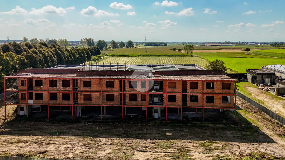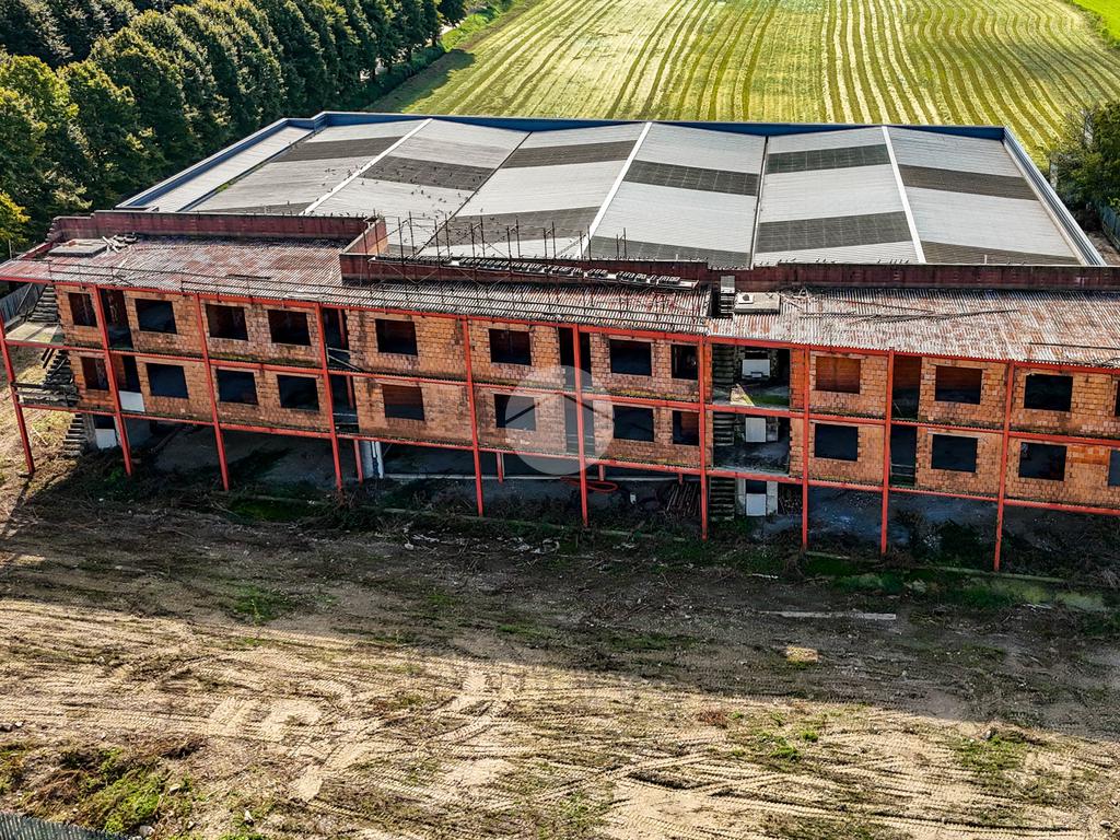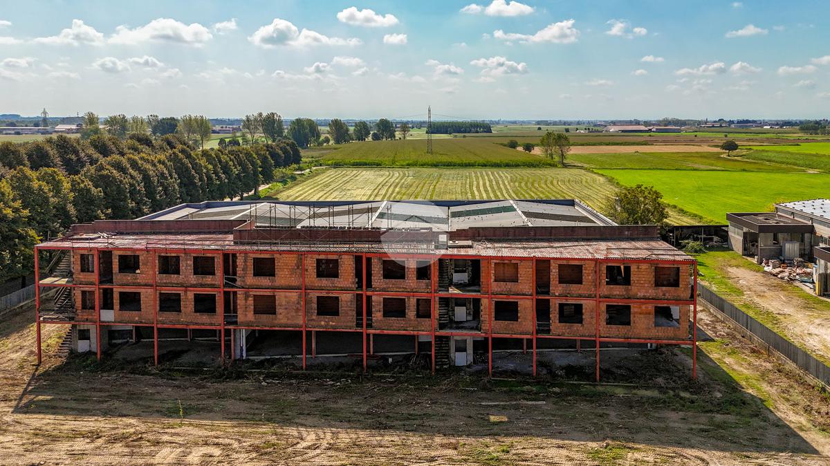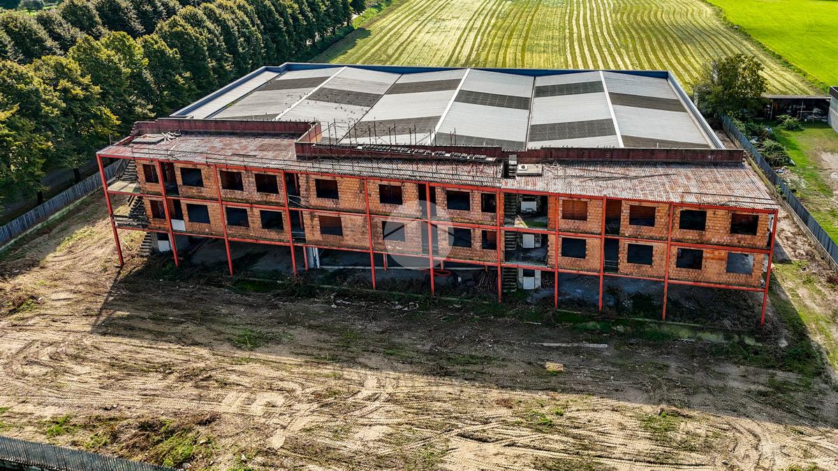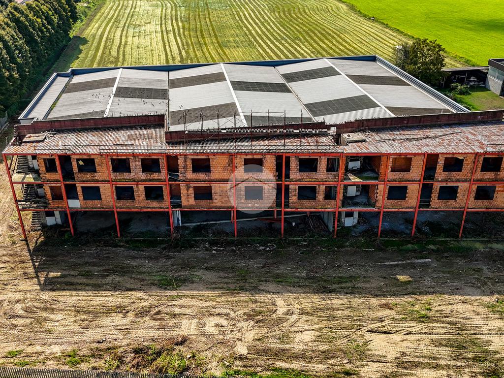 - Il capannone, avente pilastri, presenta una superficie di 1.350 metri quadrati circa, distribuiti interamente al piano terra ripartito su oltre cinque locali lungo tre campate. L’ingresso può avvenire mediante quattro portoni d’accesso di altezza circa 4,5 metri mentre internamente la struttura raggiunge un’altezza di 8,5 metri con un’altezza sotto trave di 7,5 metri circa;