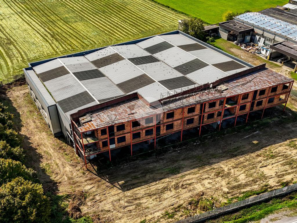 Il capannone proposto in vendita possiede una superficie di circa 2.550 metri quadrati interni, di cui 1.200 metri quadrati circa adibiti a spazio commerciale, con annessa un'area esterna privata di circa 3.481 metri quadrati.