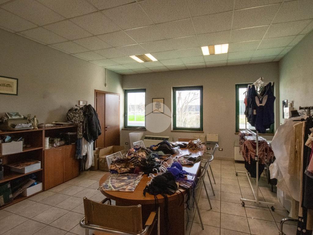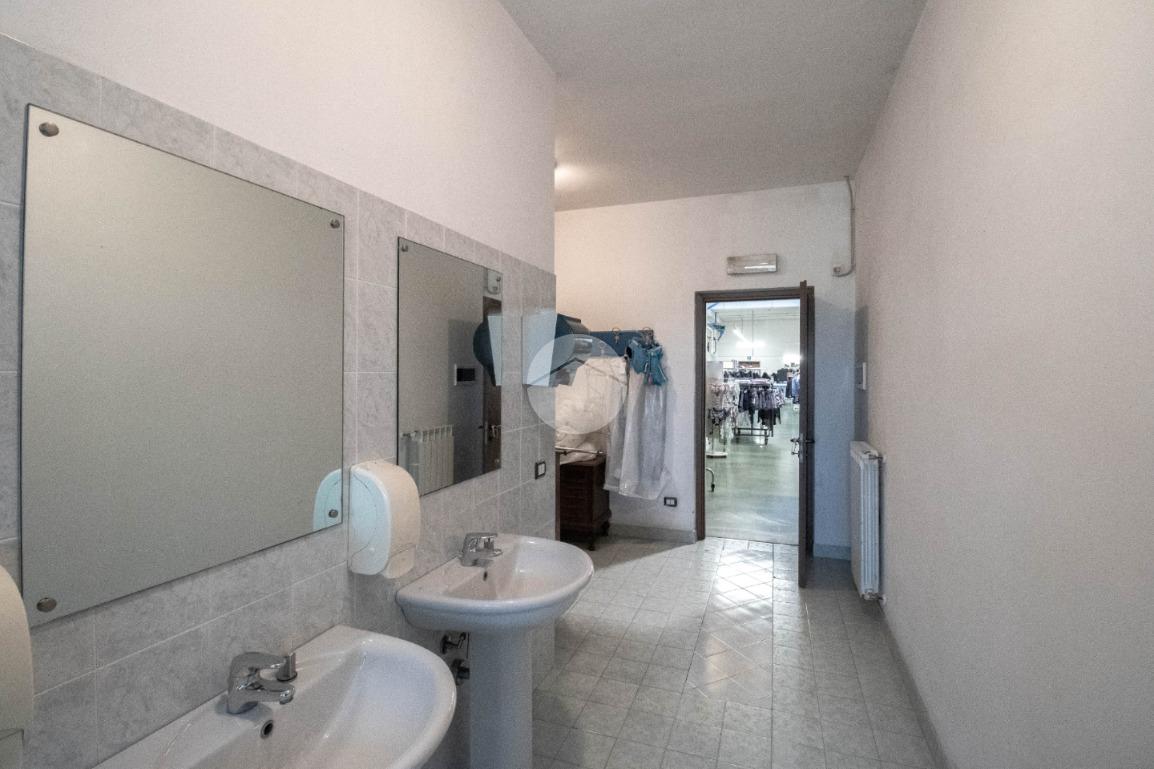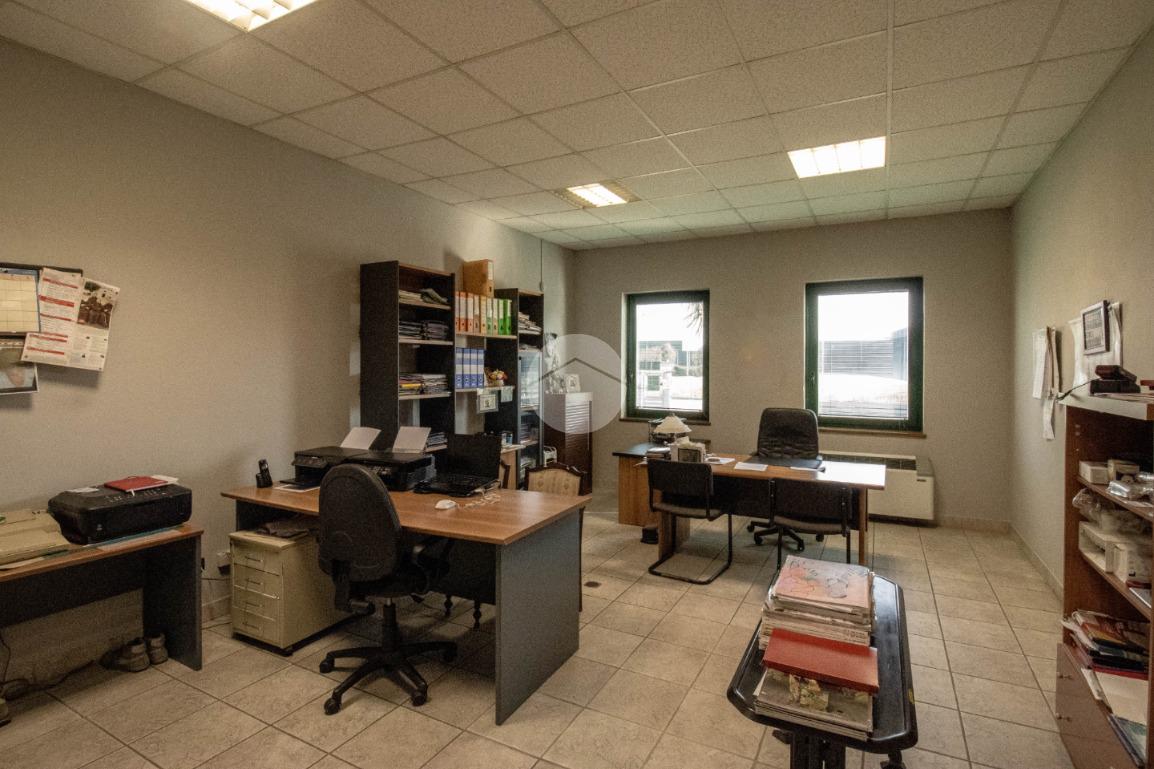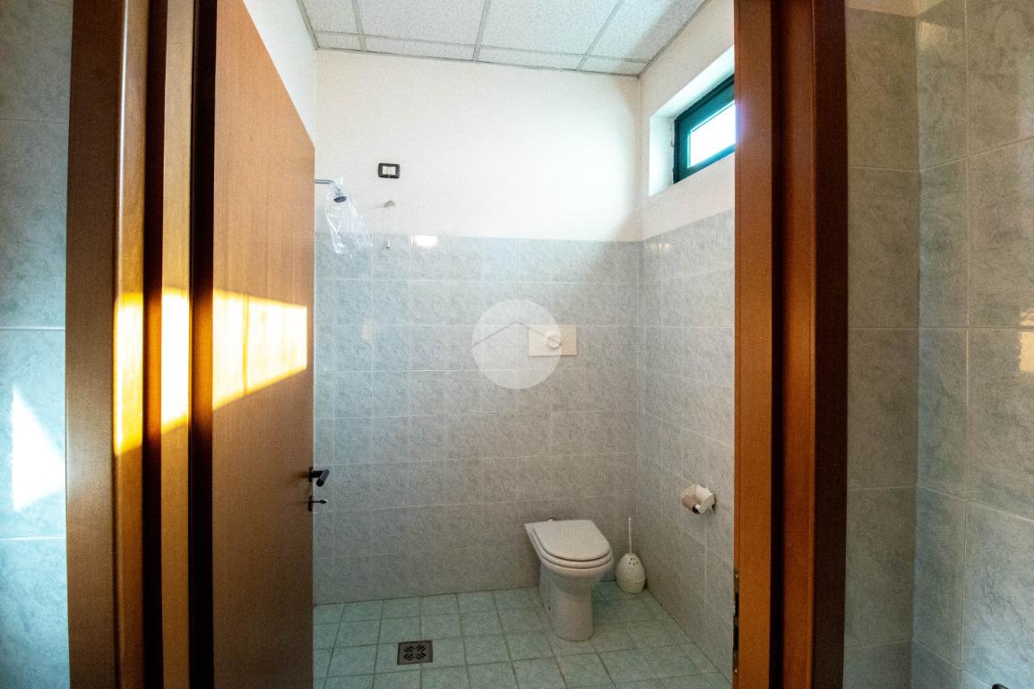 - Al piano terra troviamo circa 840 metri quadrati di capannone, di cui 800 metri quadrati di spazio commerciale e due locali adibiti ad uffici, disposto interamente al piano terra lungo un'unica campata con annessi quattro servizi igienici privati, di cui due a norma disabili, completi di mensa, area spogliatoio e comode docce;