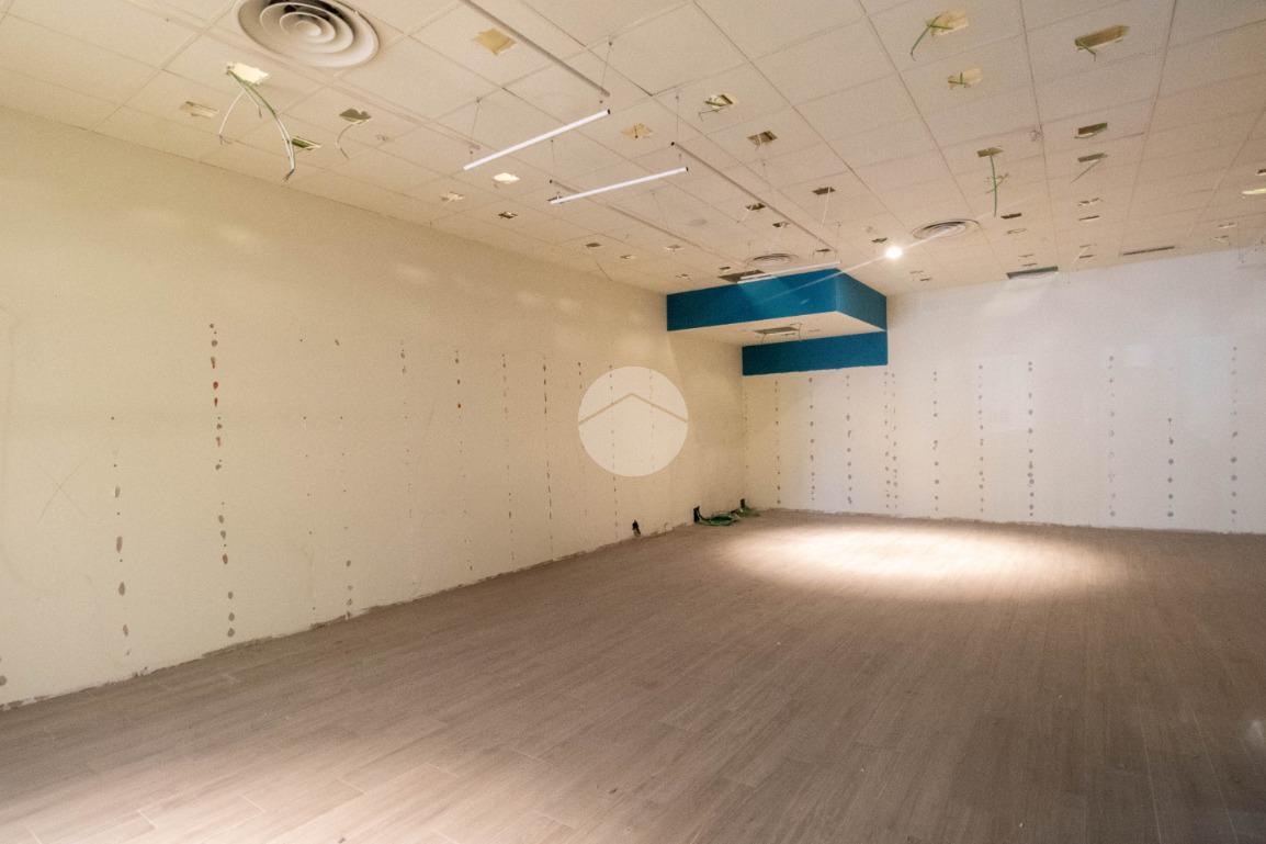 L'immobile in affitto, avente superficie interna di circa 135 metri quadrati, estende la propria metratura interamente al piano terra lungo un unico locale open space, arricchito da circa quattro comodi servizi igienici privati, a norma disabili, disponibili in comune all’interno del Centro Commerciale. Internamente la struttura raggiunge un’altezza di circa 3,4 metri e presenta pavimentazione in parquet, la quale dona maggiore luminosità all'ambiente interno. Il locale commerciale, a norma per l’accesso disabili, è dotato di riscaldamento e condizionamento (ambedue centralizzati), oltre che d’impiantistica elettrica e d'illuminazione; dispone infine di una predisposizione per l’impianto di cablaggio. Completa la soluzione il sistema antincendio condominiale del Centro Commerciale, conforme alle normative vigenti e con i seguenti impianti nelle aree comuni: impianto d’allarme, videosorveglianza, illuminazione d’emergenza e uscita di sicurezza mentre sono presenti all’interno dell’immobile i rilevatori antifumo e l’antincendio a idranti. La proprietà risulta disporre di saracinesca motorizzata.