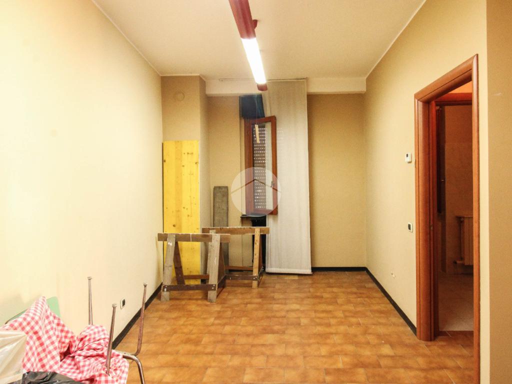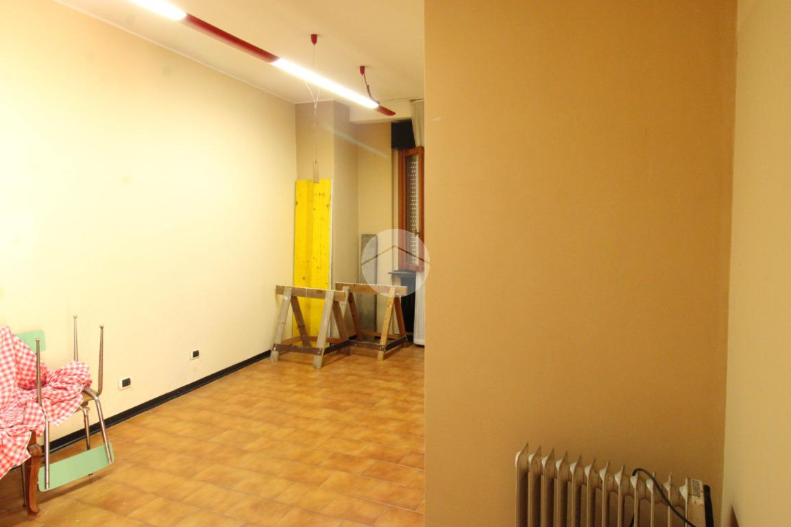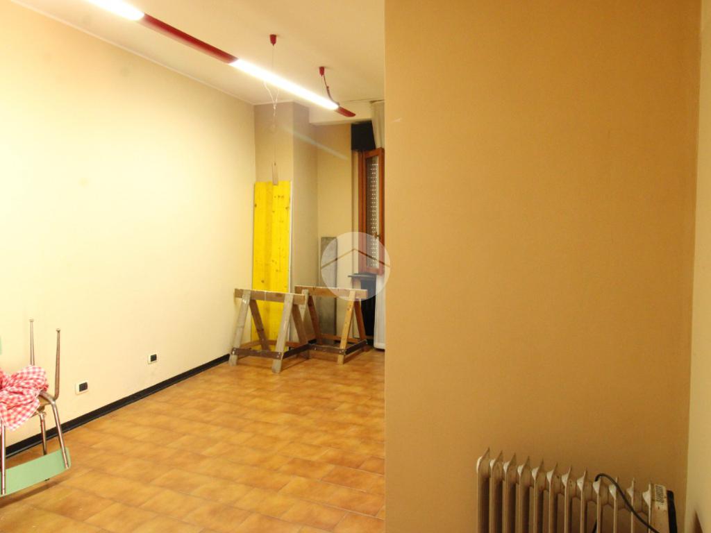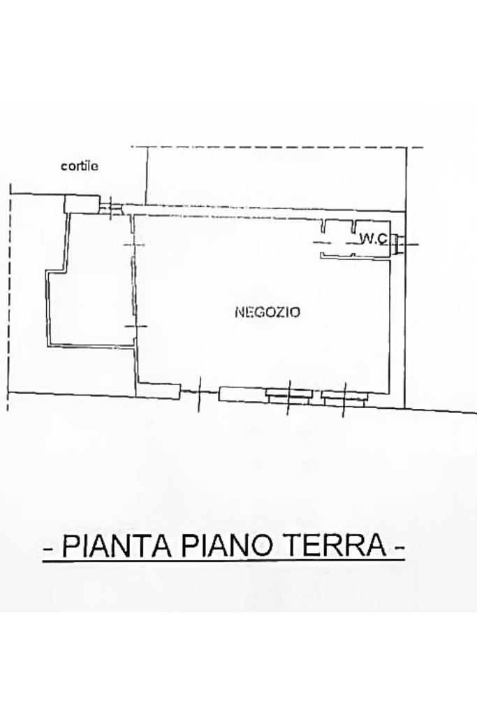 Proponiamo in locazione un negozio di circa 100 metri quadrati, distribuiti al pian terreno di un edificio di due piani.