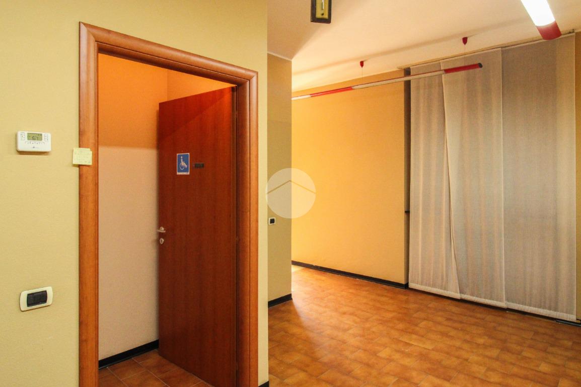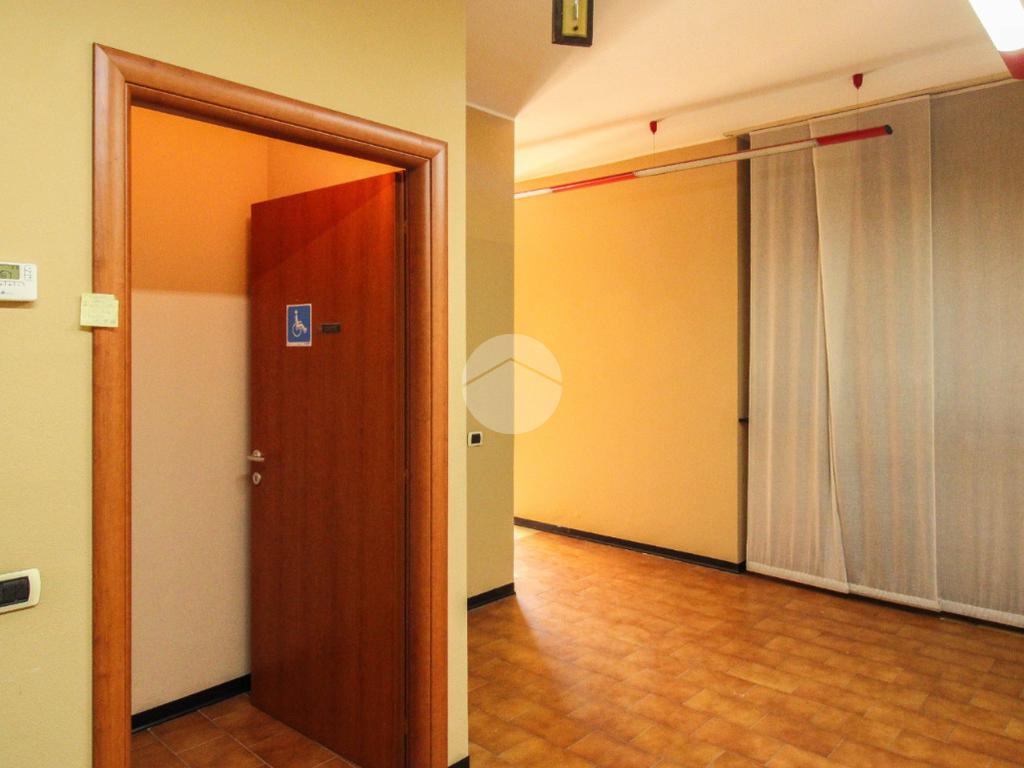 La soluzione proposta in affitto possiede una metratura complessiva di circa 100 metri quadrati, disposti interamente al piano terra con annessi due servizi igienici privati, uno dei quali risulta essere a norma disabili. Internamente la struttura, a norma per l’accesso disabili, raggiunge un'altezza di circa 3,15 metri data la presenza di controsoffitto. Il locale commerciale è servito da tutti gli impianti necessari quali riscaldamento autonomo, impiantistica elettrica e d’illuminazione; completa la soluzione un’uscita d’emergenza. La proprietà risulta essere cablata.