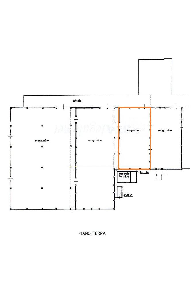 Il capannone dispone di una metratura complessiva di circa 520 metri quadrati, di cui 50 metri quadrati circa adibiti a spazio direzionale, il tutto disposto su un’unica campata al piano terra con annesso un servizio igienico privato. L’ingresso può avvenire mediante due portoni di altezza 4 metri mentre internamente la struttura, libera da pilastri, raggiunge un'altezza di circa 7,6 metri con un’altezza sotto trave di circa 4 metri. L’immobile è dotato d’impiantistica elettrica (da revisionare) e d’illuminazione, ambedue autonomi; è infine dotato di un sistema antincendio composto da un’uscita d’emergenza con annesse relative luci di emergenza. Esternamente il capannone gode di circa 100 metri quadrati di area cortilizia privata e recintata mediante cancello completo di un passo carraio e un accesso carraio. La proprietà risulta possedere tetto in eternit.